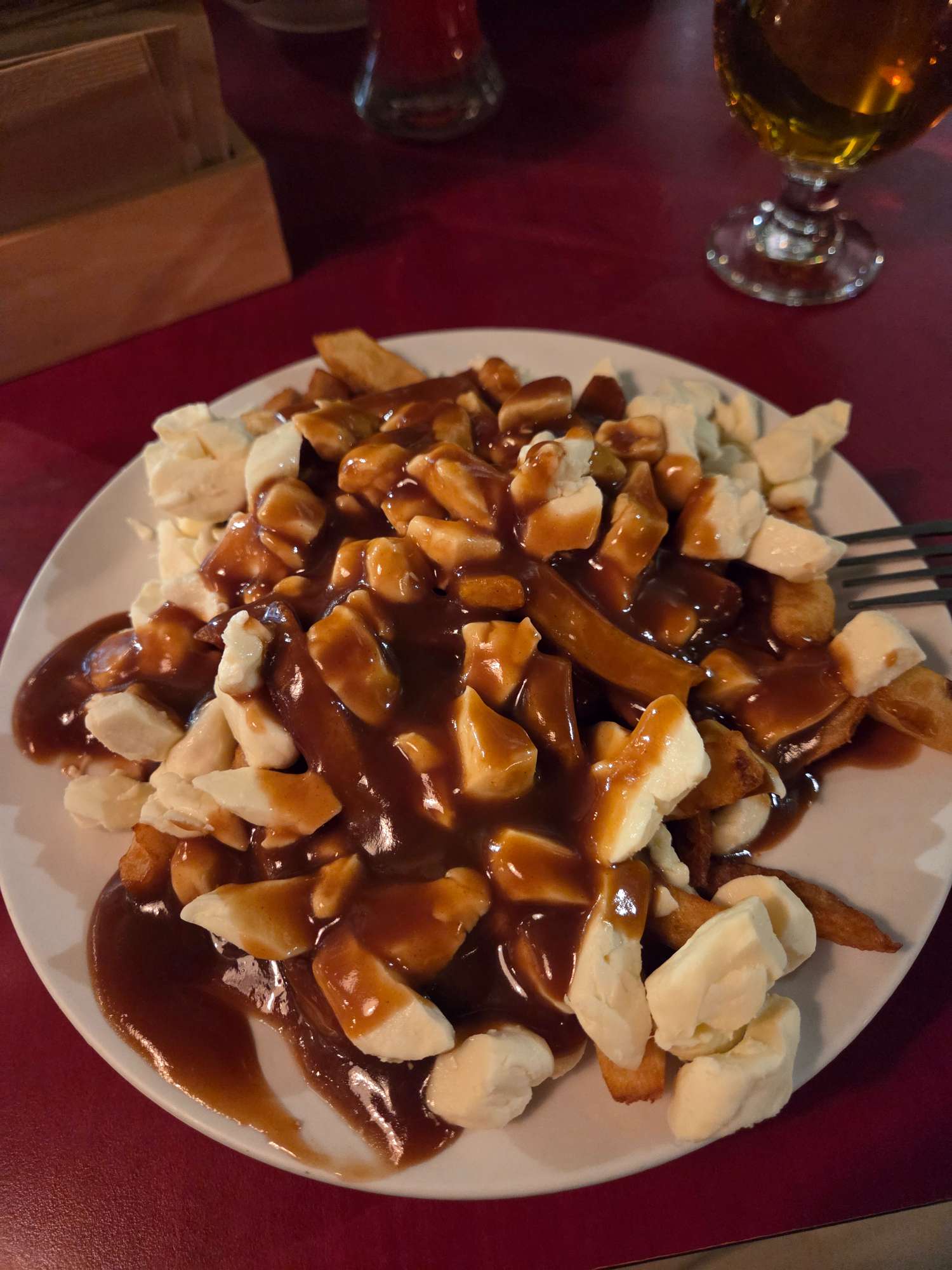 Le fromage était excellent et en très bonne quantité Les frites étaient très bonnes La sauce était très ordinaire, elle goûtait trop la bière rousse ou brune, j'aime ça habituellement, mais il y a une limite