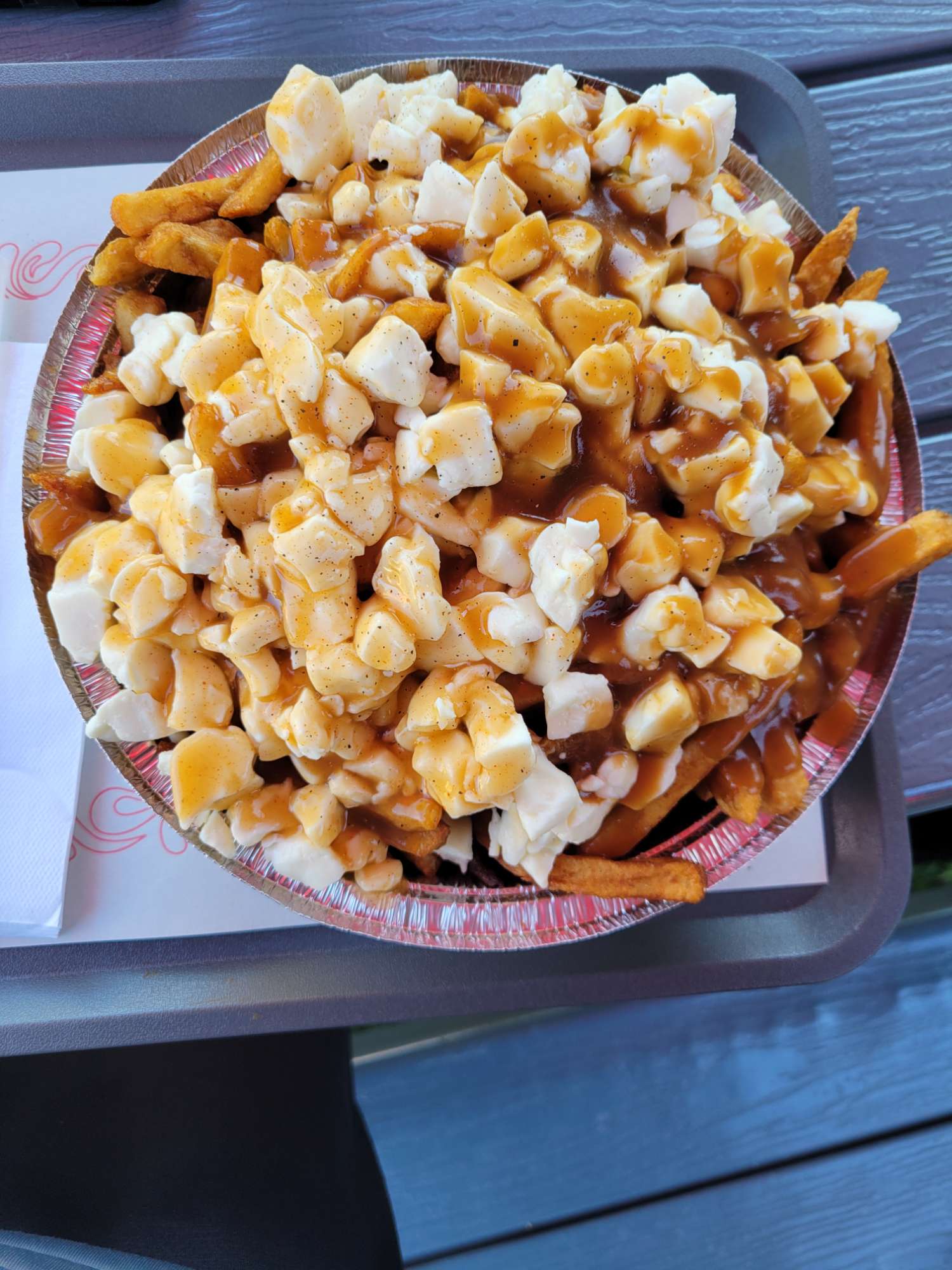 Pour la poutine, le fromage et les frites sont délicieux. La sauce mériterait d’être légèrement plus goûteuse. Donne toute une bonne poutine !