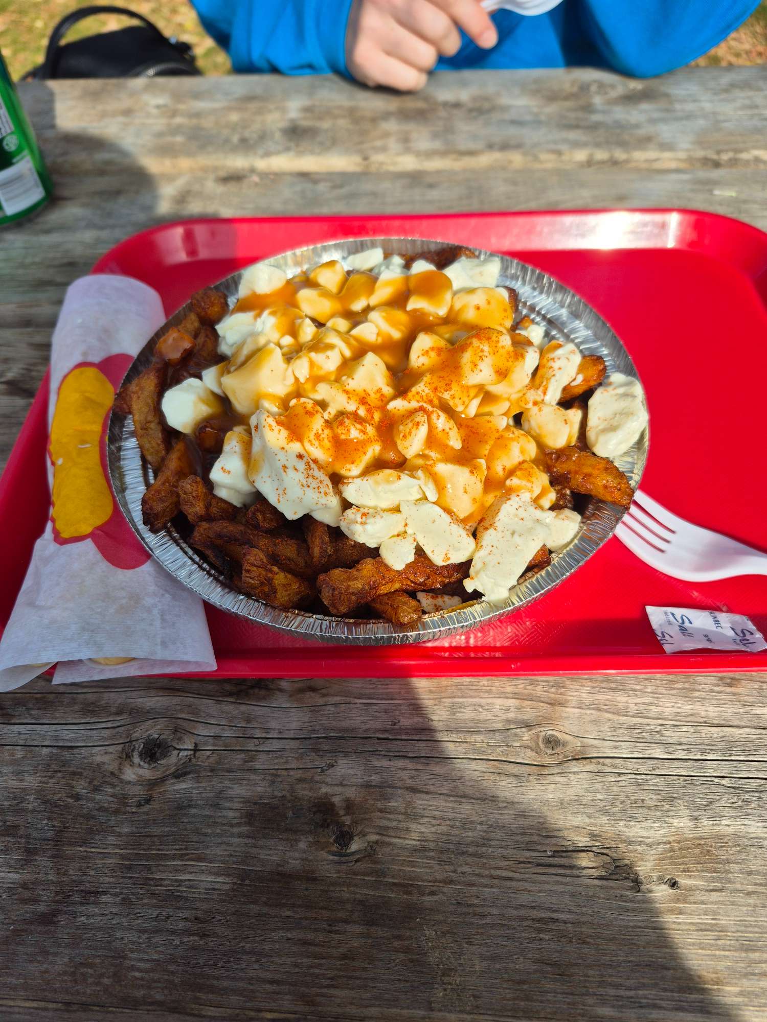 Frite molle, graisseuse et un petit goût de brûler. Sauce peu goûteuse. Fromage ok sans plus . Hot dog saucisse trop cuite ! Finalement pas terrible comme cantine a mon goût !