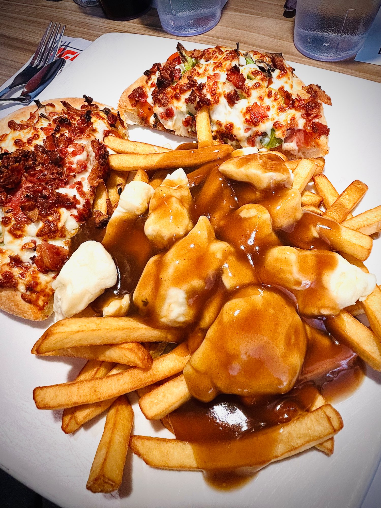 J’ai commandé un duo poutine / pizza. Poutine bonne en générale. Sauce qui me rappelle certaines sauces de mon enfance et gros morceaux de fromage frais. Le gros bémol, c’est les frites congelé et farineuse malheureusement. Par contre, super bonne pizza, je conseille le duo 😉🍕